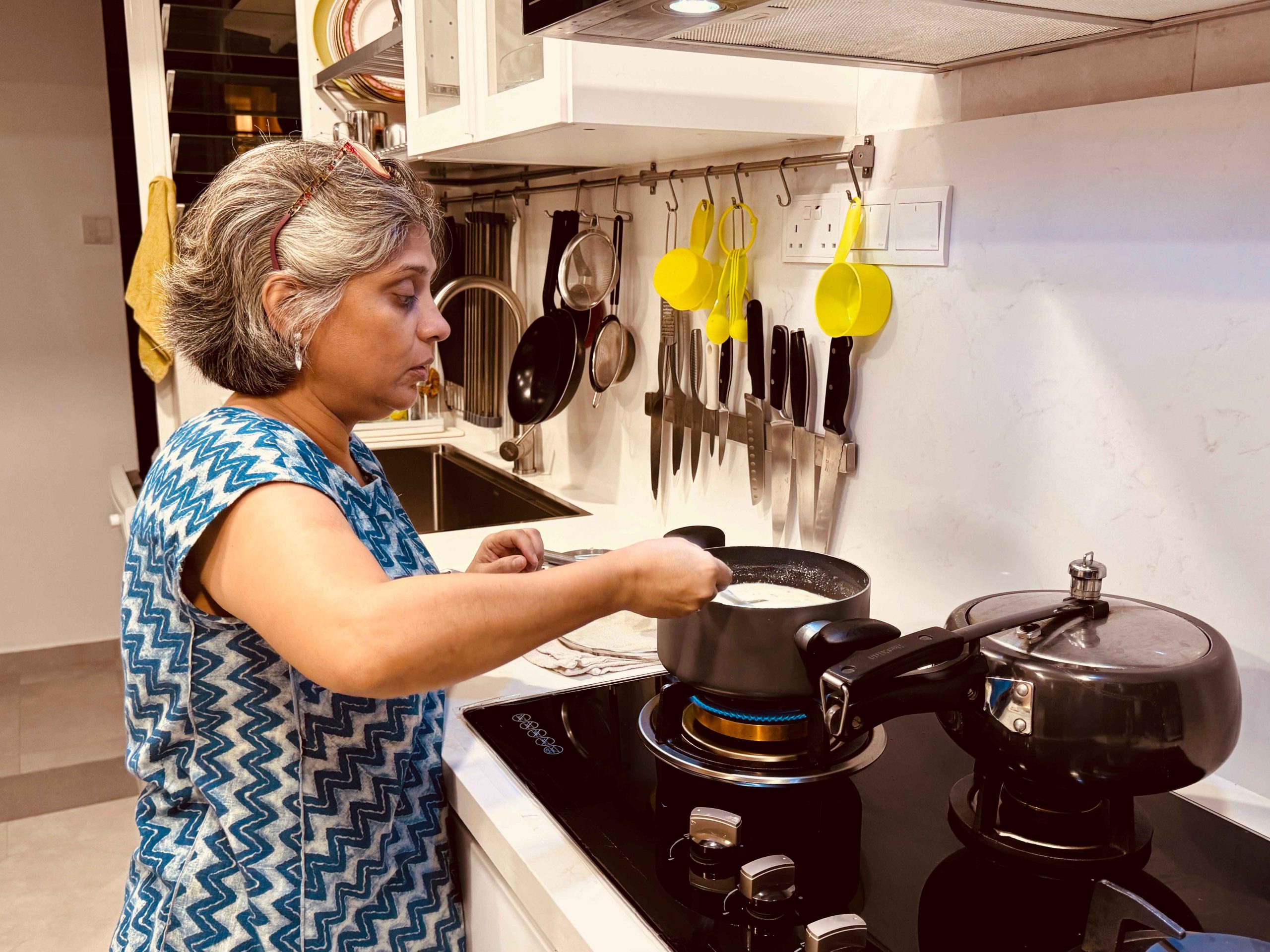 As a host, Vishakha blends traditional recipes with fresh, locally sourced ingredients from Singapore’s markets, creating a unique fusion of her Indian heritage and global culinary influences.